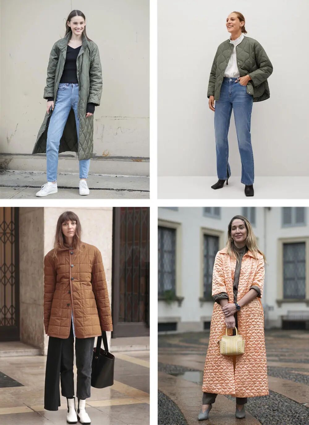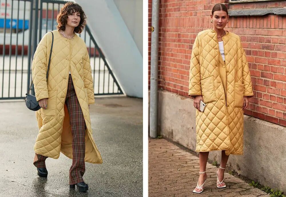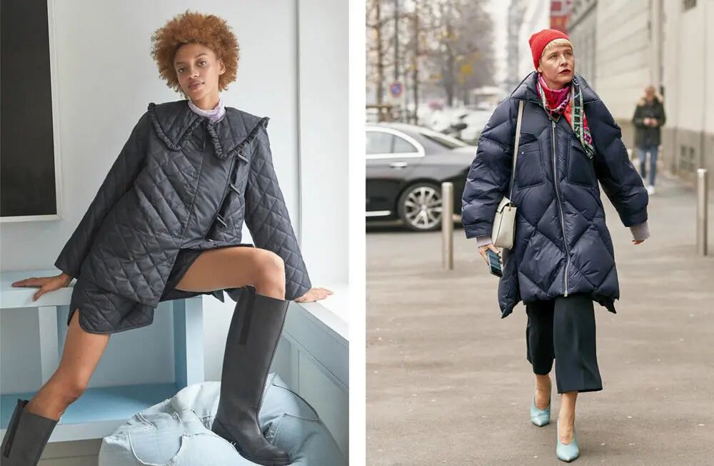 ▲穿长款绗缝棉衣的时候,也要遵循这一原则。相比之下,这两种搭配也是右边的造型更利落。