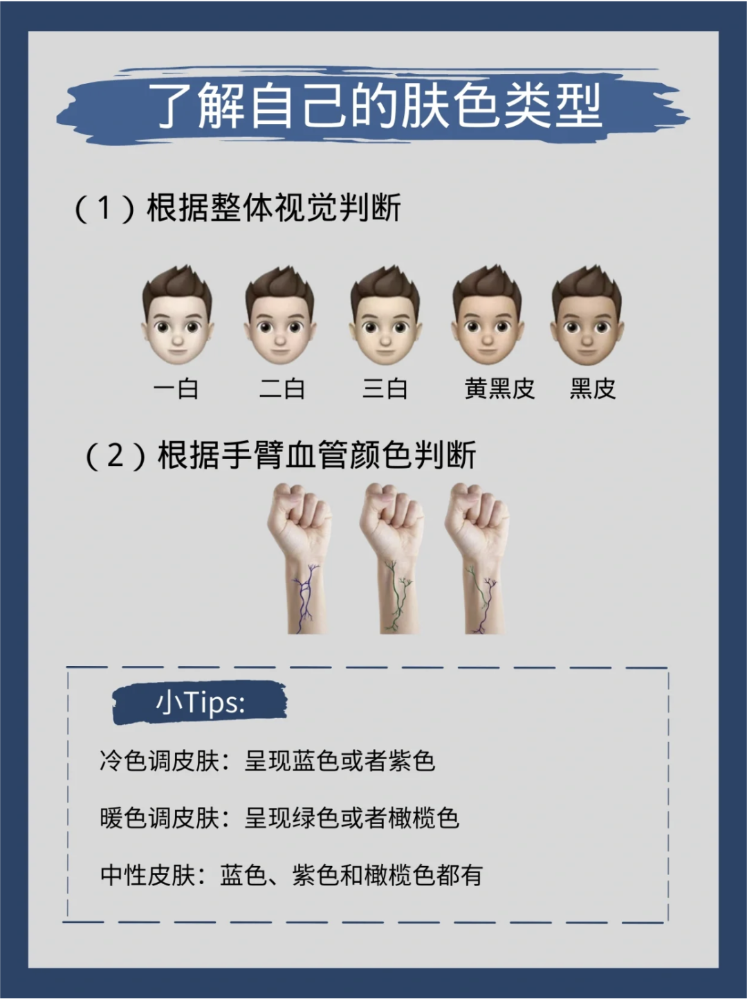 可以看这张图,找到自己的肤色