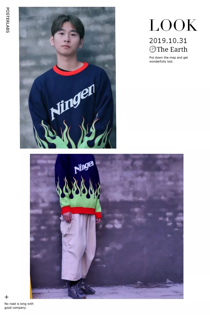 深蓝色火焰圆领毛衣引领潮流