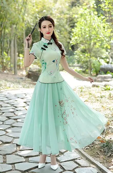 旗袍的面料也是多种多样的,有真丝旗袍,丝绸旗袍,丝绒旗袍,棉麻旗袍,香云纱旗袍,雪纺旗袍等。夏季穿旗袍以清凉为主,所以夏季穿旗袍首选是真丝或者香云纱旗袍,这些材质穿在身上吸汗能力很强,透气性也很不错,集舒适与好看与一体。如果是追求性价比的女性,那么夏季建议选棉麻旗袍比较好,既舒适透气又实惠。
