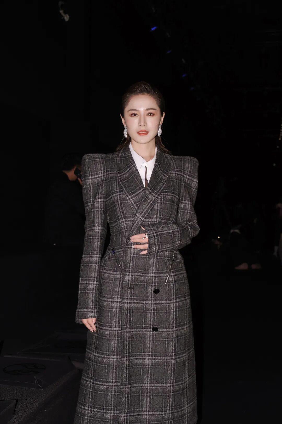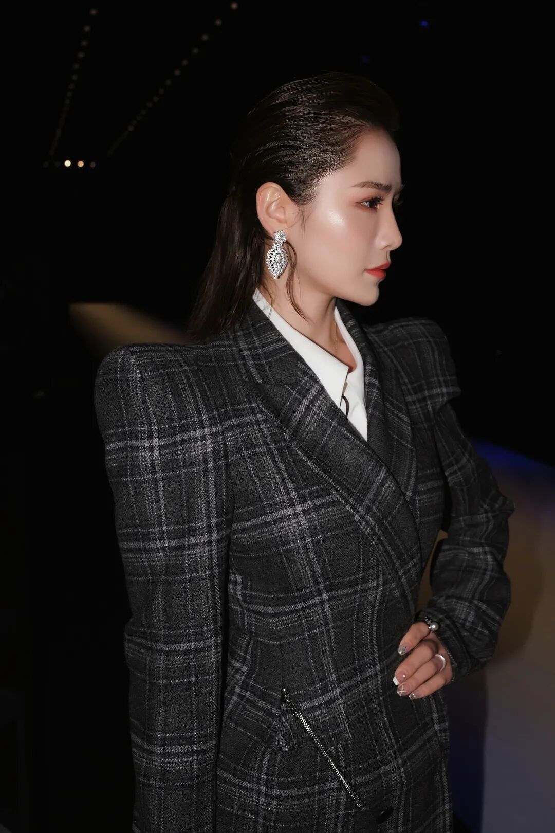 而且仔细观察时装周的look就会发现,为了避免无聊,设计师通常会加入了浮夸感的饰品形成造型感。所以在我的look里也加入了一条亮晶耳环吸引注意力,摆脱刻板印象,加强造型趣味性。