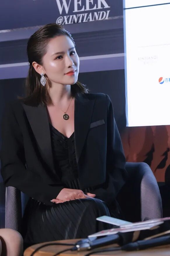 除了用颜色上的差别打造层次感,英英子这次特意穿着了D.MARTINA QUEEN的“错位时空”秀场系列。