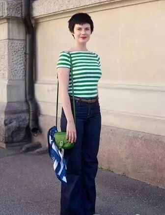 横向张力真的会让你在不知不觉中就胖了许多。身高的问题需要竖条纹来补救。