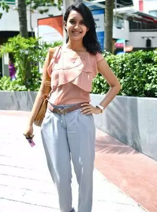 荷叶领这样繁复的款式是避而退之的风格,会加重上身的视觉负担,让你变得更矮。