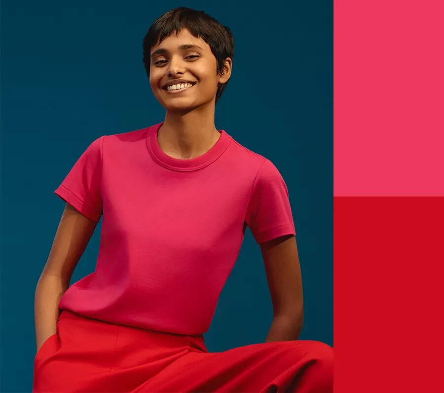 红色是 U 系列为女装准备的本季重点色彩,选择相当丰富。色彩方面既有本季热门的罂粟 红也有更具有季节感的浆果红,细节上来看不同领形、修身或宽松的设计都有覆盖到,方便大家根据各自的身 材、喜好来选择,满足本季流行的大面积穿红色的搭配需求。