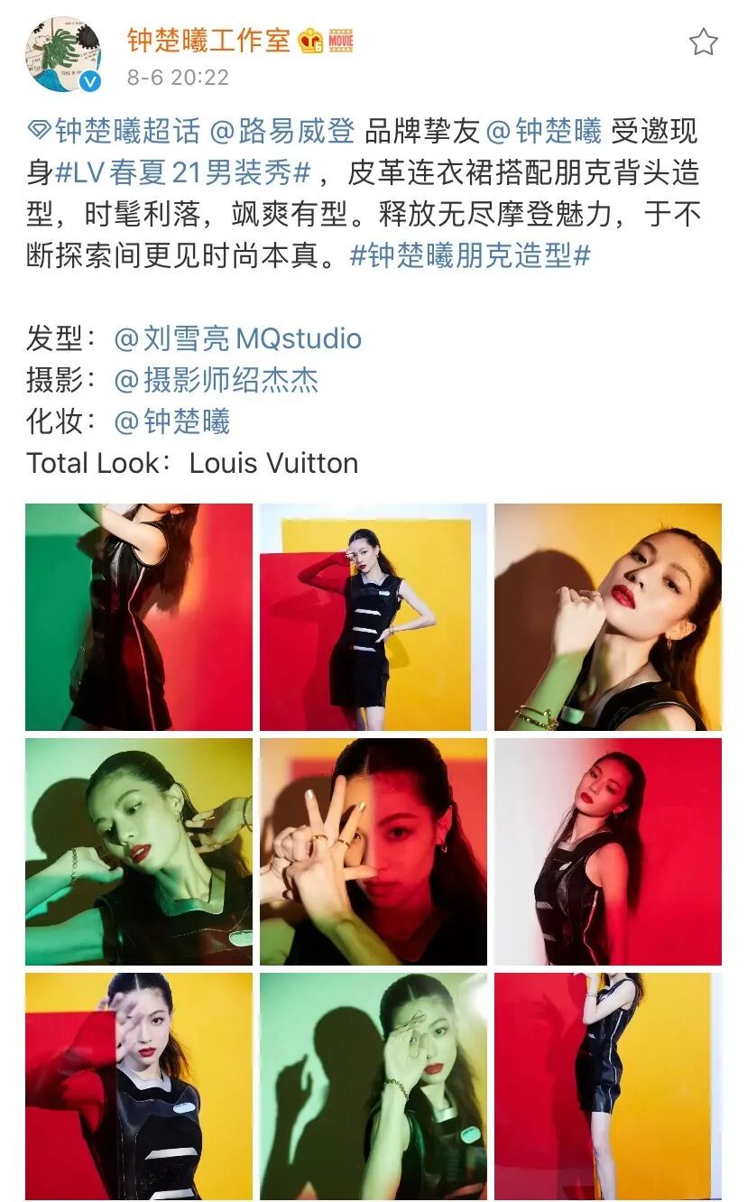 还有在前阵子LV春夏21男装秀上,钟楚曦不仅自己化妆,连拍照背景都是她自己画的涂鸦,网友感叹道:“以后活动大片钟姐一个人就能承包了!”