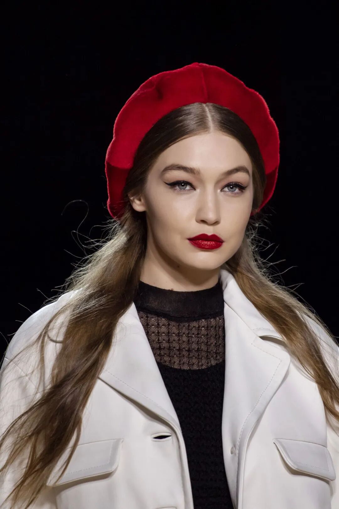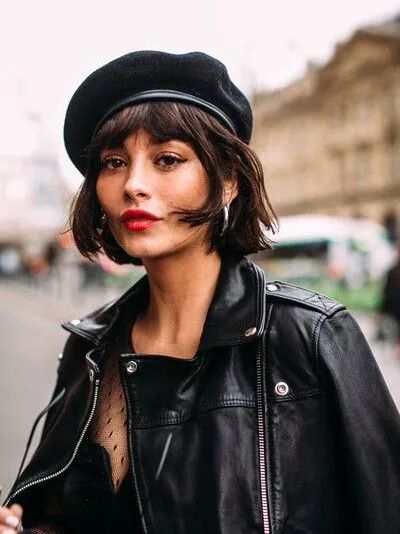 硬挺的皮革贝雷帽也很适合长脸