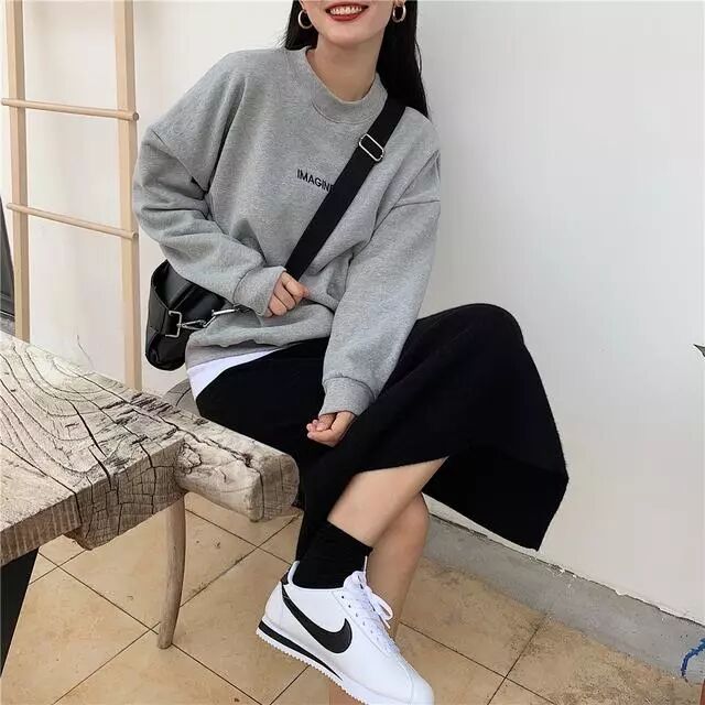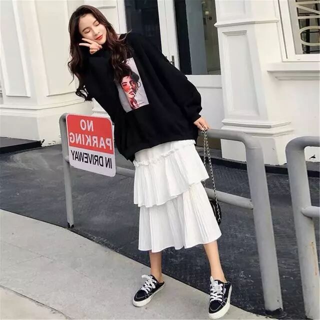 一件黑色的卫衣可以穿很久都不会过时,而且可以搭配很多单品。不过今年比较流行的应该是卫衣搭配蛋糕裙。非常特别的一种搭配,也非常的好看,完美的展现了你的女孩子淑女形象。鞋子就简单的布鞋就ok了。5、卫衣+阔腿裤