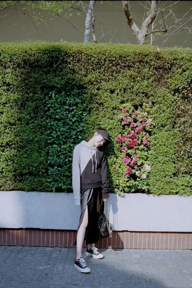 卫衣+牛仔裤这对经典cp注定要被开叉裙拆散了,更加新锐时髦的开叉裙吸引力可是很强大的。相较于牛仔裤来说,在修饰腿型方面效果更自然的开叉裙更适合粗腿女孩。腿线纤细的女生更是没有犹豫的理由,在侧边开叉的设计性感又撩人,搭配一双帆布鞋青春力度直接开最大!
