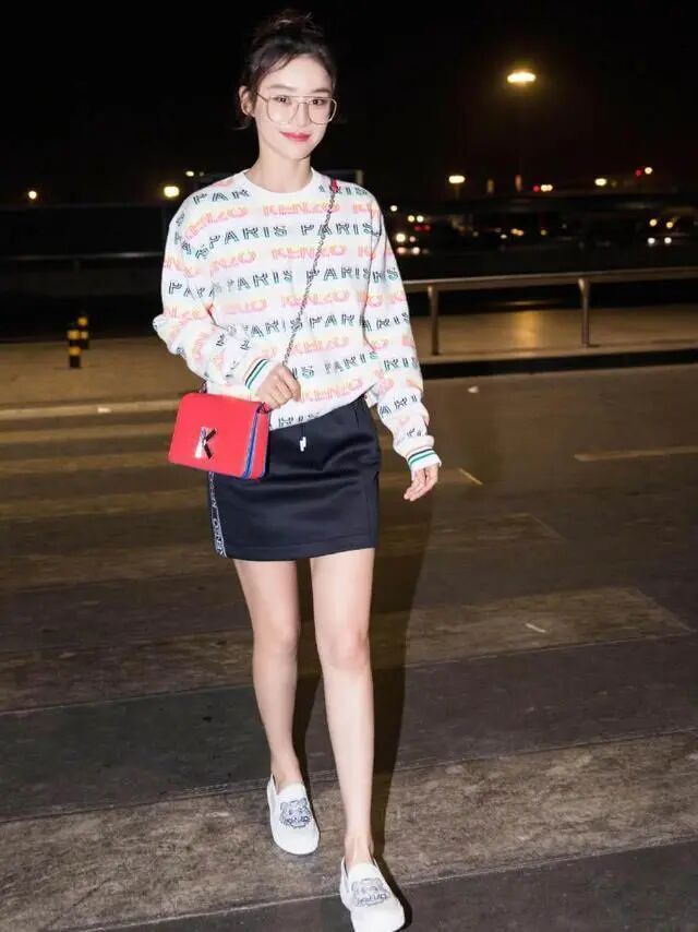 还在沉迷于卫衣+牛仔裤经典搭配中的女生快点醒一醒!学着袁姗姗用开叉裙来搭配卫衣,充满新潮感的搭配一下子就能让人眼前一亮,卫衣的百搭和开叉裙的洋气结合得非常好,简单造型时髦气质一把抓~