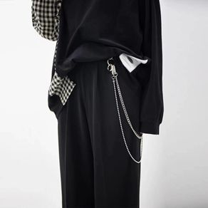 裤链可以为搭配加质感,整套穿会瞬间变得精致起来,在黑色裤子上加上金属质感和立体效果,让你走路带风;一条合适的腰带则是玩家必备,不推荐皮带,推荐帆布腰带,像ALYX的搭扣腰带,或是ow的爆款腰带.加长款腰带十分推荐.、