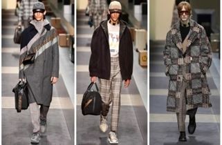 此外,Prada 2018 F/W秀上呈现出多件格纹单品叠加趋势,不同的格纹相搭配,给人以焕然一新之感,也暗示着复古格纹的潮流化。