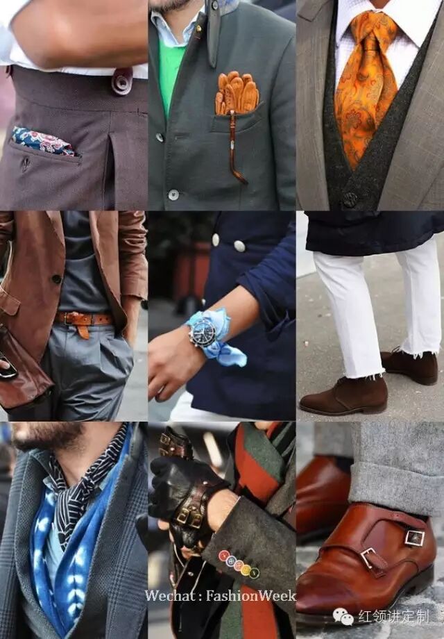 小小口袋巾,对意大利人来说只能算是基本功,发挥实验精神在饰品上,才是他们厉害之处。将方巾做为表带、皮带环结系法、方巾做为裤子口袋装饰、以手套代替口袋巾、换上彩色钮扣等小巧思,打破既有的穿搭规则,是加入意大利型男们的最终挑战。