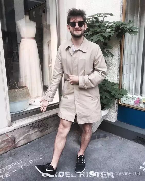 虽然设计师们很爱它,虽然英伦绅士很爱它,但是穿不好也都白搭。比如下面这位小哥,这是准备把风衣当裙子的节奏啊。