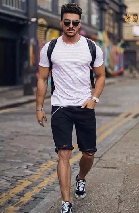 其实无彩色之间的搭配,无非就三种组合!黑白配,灰白配,灰黑配。而对于夏天而言,因为天气热的原因,整体偏暗的灰黑配就先排除掉!对于黑白配而言,因为都是无彩色,搭配本就是百搭色配百搭色,安全是安全,但是难免会平凡!所以加入一点美学技巧尤为必要。比如颜色的交替:白黑白黑白,对应着的是白色的T恤,黑色的短裤,白色的鞋带,黑色的鞋面,白色的鞋底!