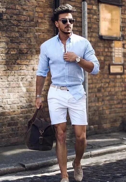 但是如果说有彩色用在上装的时候,下装是以白色来配。那么上装的有彩色最好是淡蓝色,而不是深蓝色!比如淡蓝色上衣配白色的短裤!