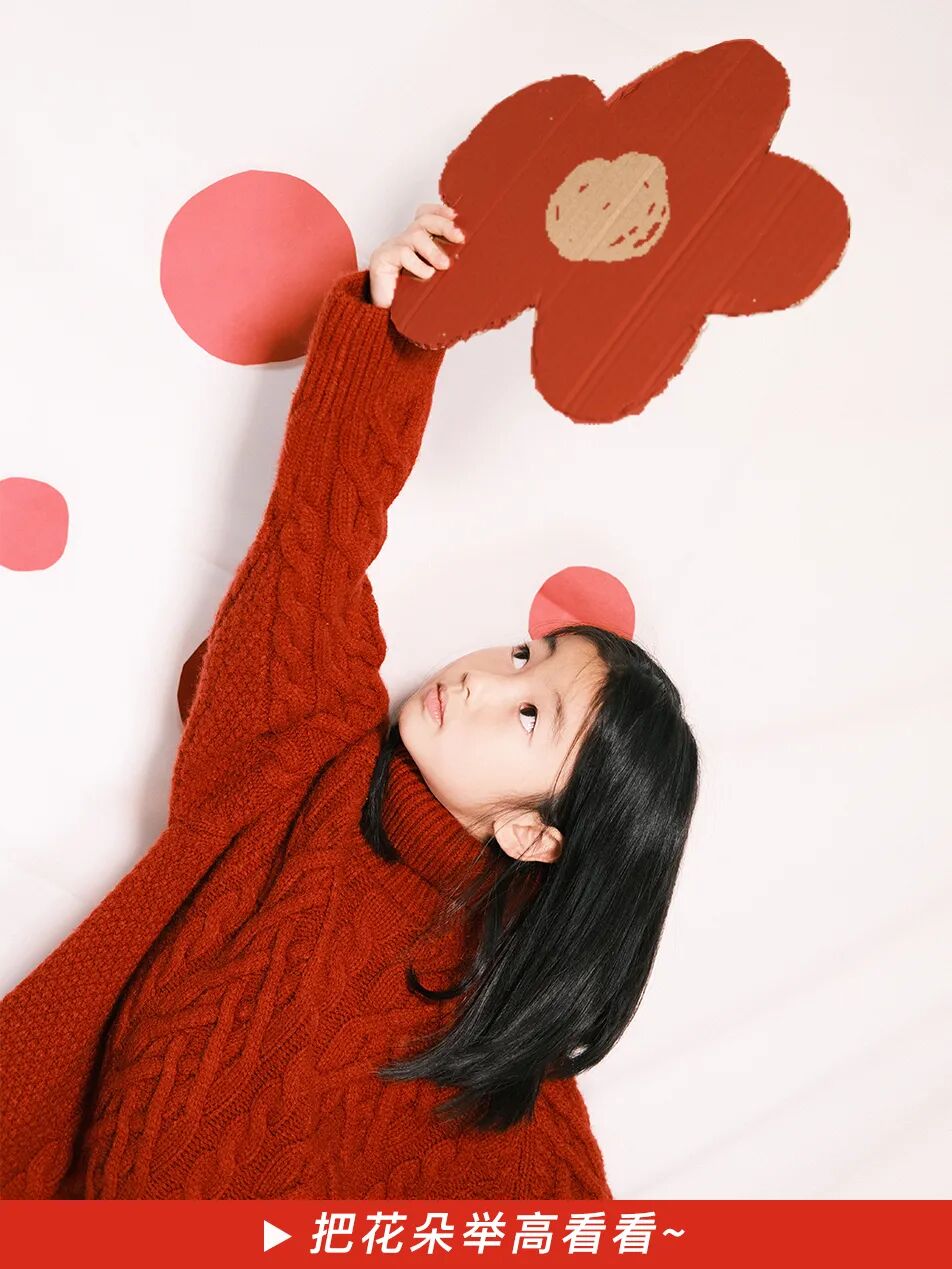 看起来就像是宝宝举着一个巨型红包,轻松 get 小红书当下最火的姿势。
