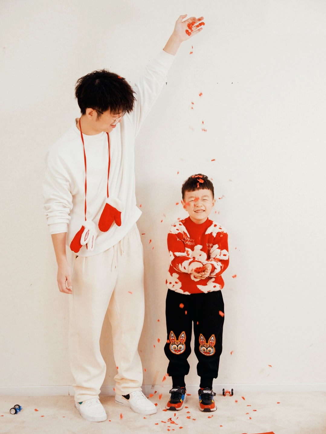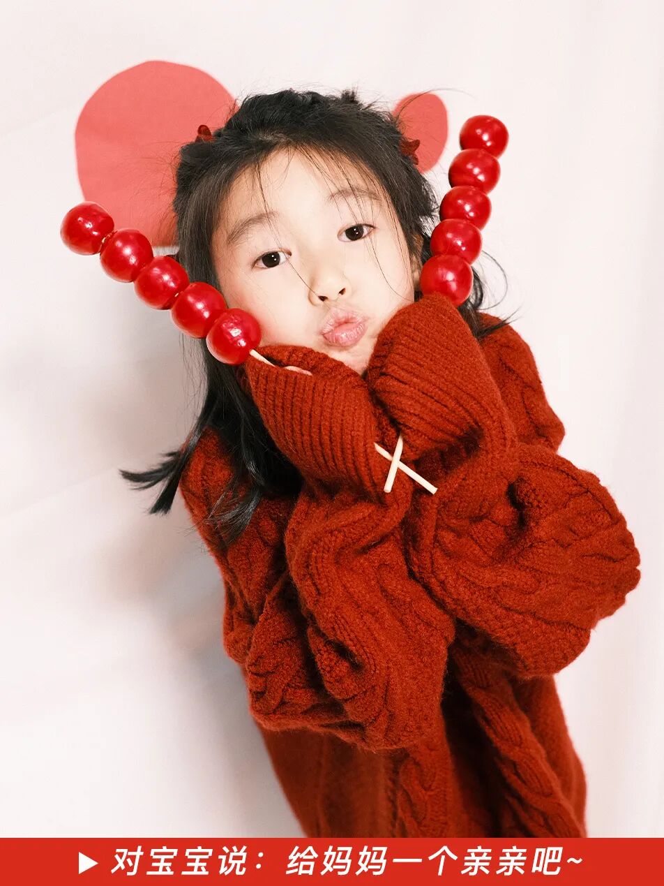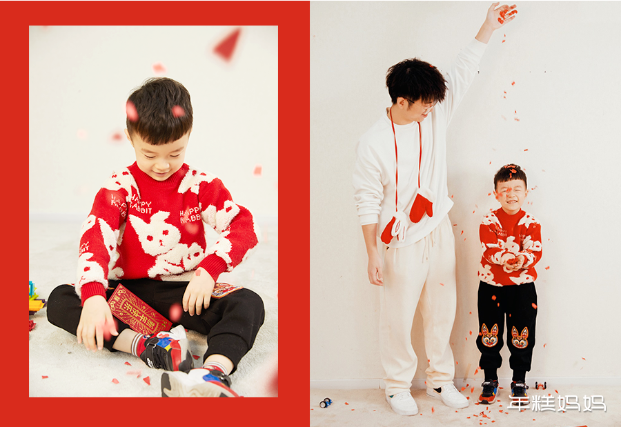 要是已经给娃准备了年服,现在完全可以利用起来了!有红色的点缀,能轻松不费力的制造出浓浓的新春氛围。