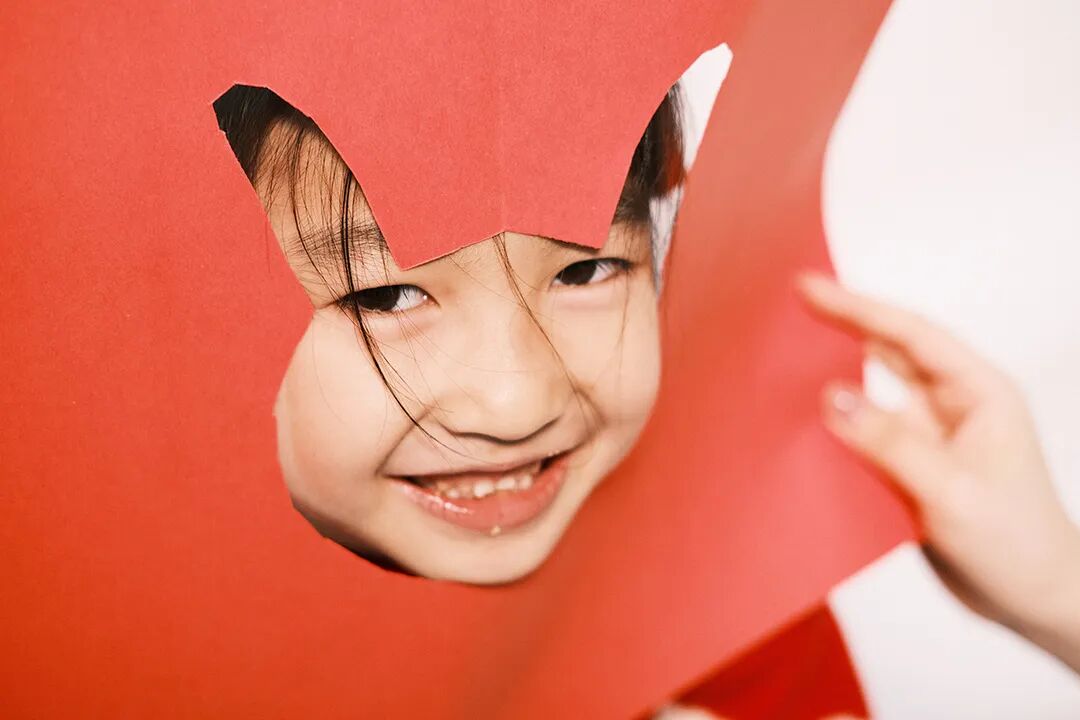 ▶剪纸剩下的碎纸片也别浪费哦!可以撒在手机前做前景,选择连拍模式。或者让大人撒娃在下面接着,一组亲子照就有啦~
