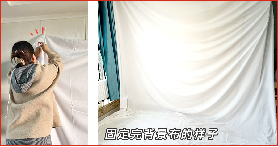 如果没有白墙,像我们这样准备一块白色背景布也是可以的哦~