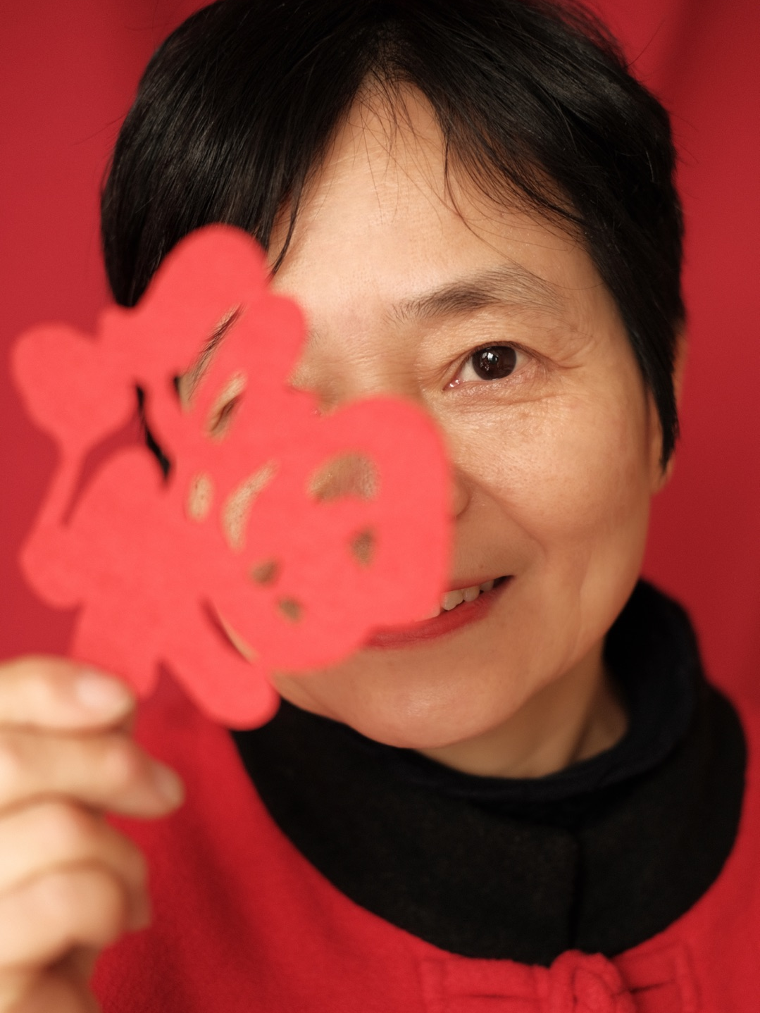 ▶可以拿着镂空的福字挡在手机镜头前,透过“福”的笔画去拍宝宝,让福字成为前景(注意不要遮住娃的脸)。
