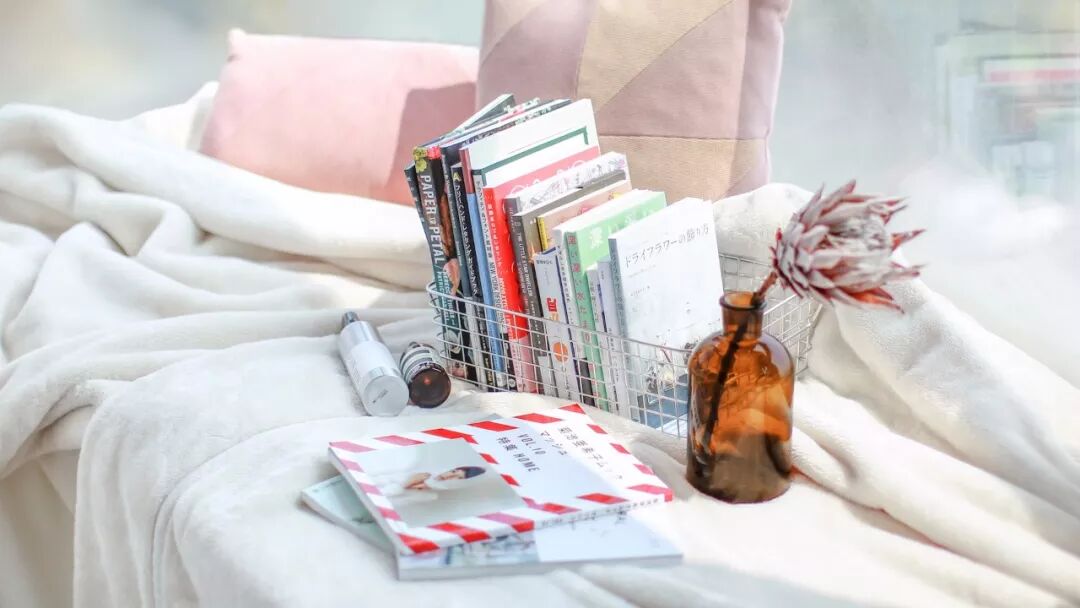 除了找个纯色的背景进行全家福的拍摄以外,我们还可以找一些家里比较漂亮的角落,或者说一些比较干净的背景布置一下。例如说家里的飘窗,可以铺一块白布或者毯子,可以放置跟主题色相关的抱枕,如果觉得单调还可以摆上一些书,放上好看的干花作为装饰。