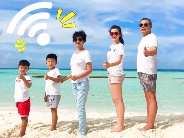 若是在外度假,像李冰冰一家这样创意满分的全家福,有趣又有爱!
