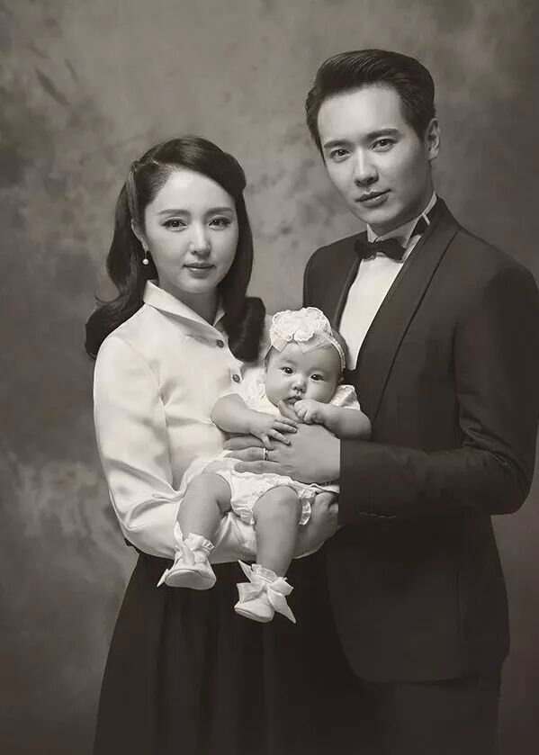 董璇一家这组黑白系列的全家福不仅美,还很有质感。