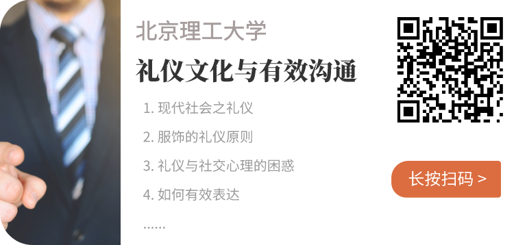 礼仪是个人内在修养的外在表现,好的礼仪可以助你在职场上游刃有余、甚至升职加薪。点击本课,学习礼仪文化,掌握日常工作和生活中的礼仪规范和沟通能力,快速告别职场小白,走上人生巅峰~