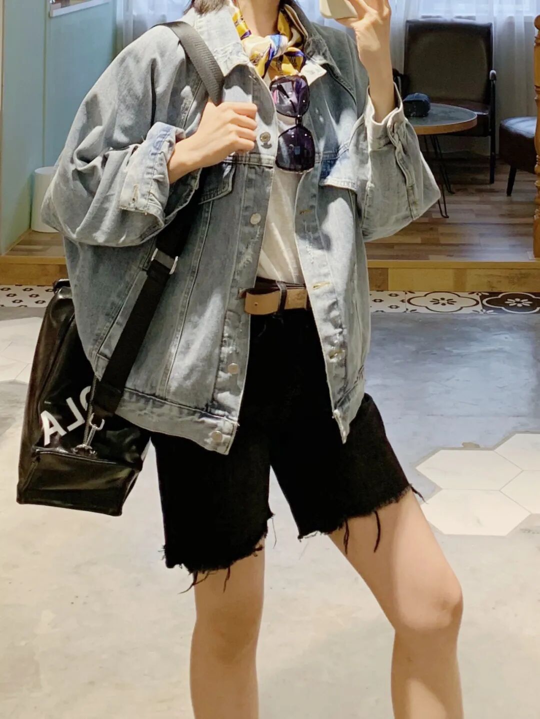 牛仔外套+骑行裤