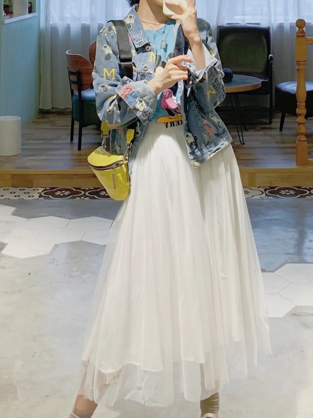 刺绣牛仔外套+网纱半裙