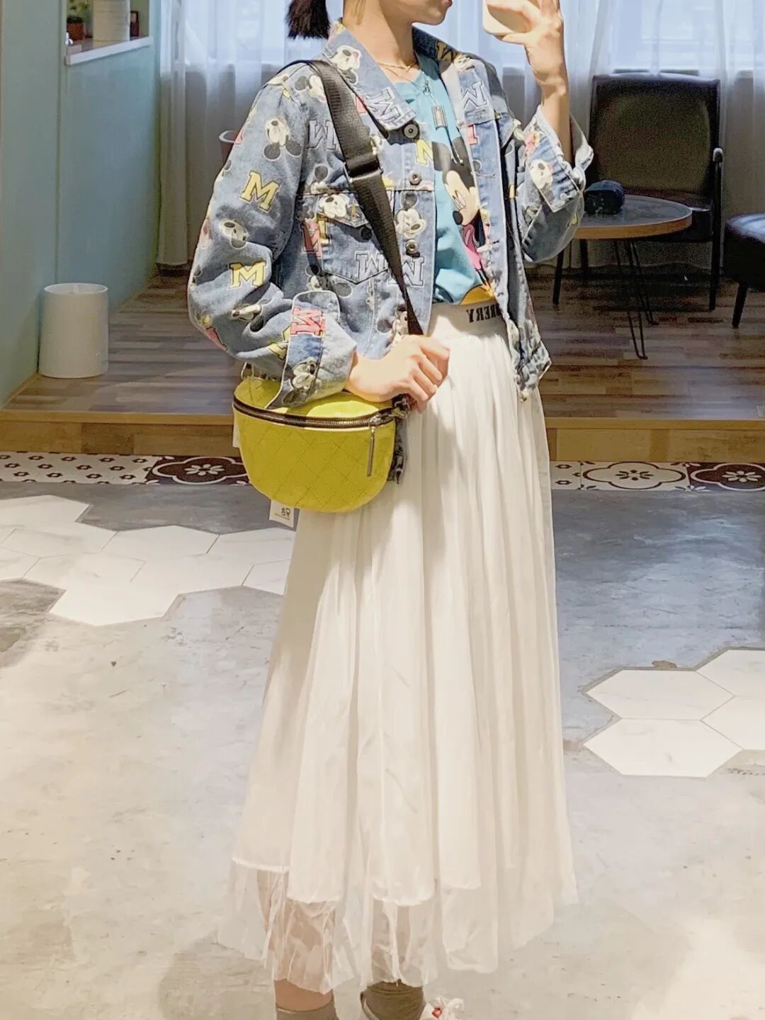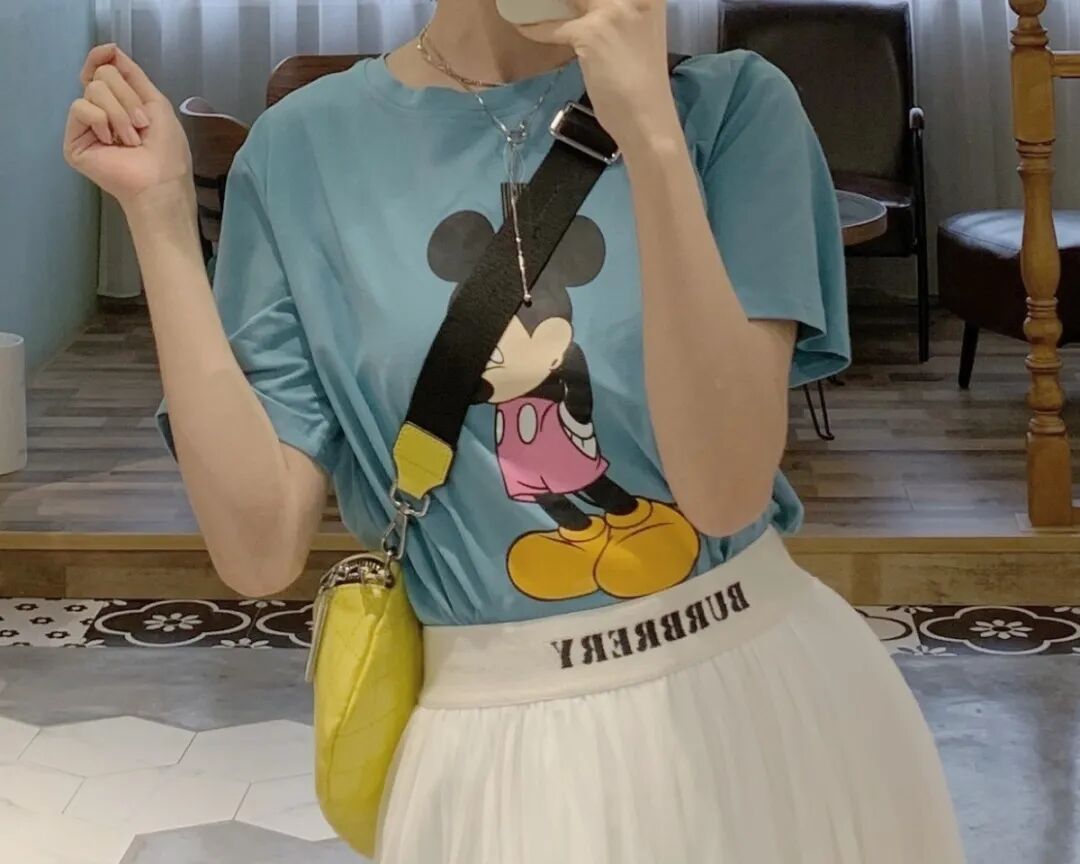 刺绣米奇牛仔外套,整体感觉非常的嫩,简单的搭配一件t恤在里面,搭配上一条网纱半裙,就非常好看而且超减龄哟~