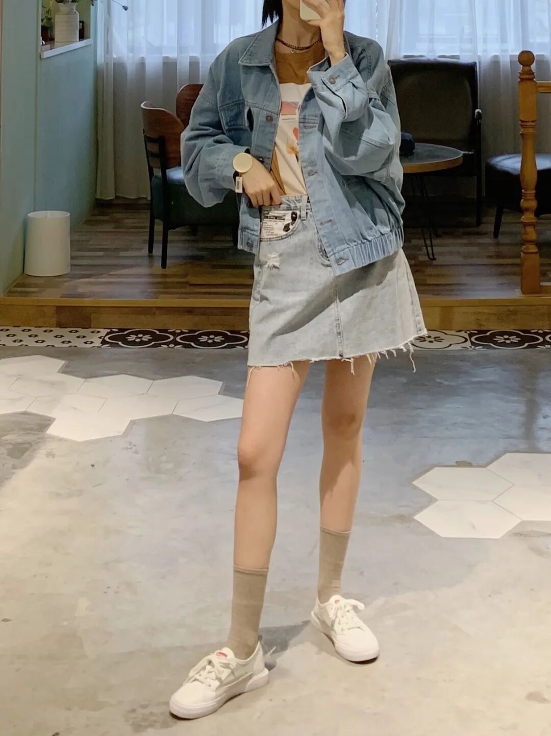 牛仔外套+短半裙