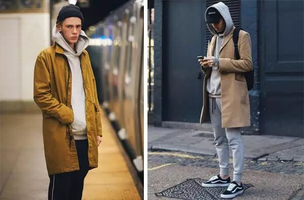 其实这种搭配方式在国外早已红好久了,今年又卷土重来!院长个人觉得种搭配方式超级保暖、非常适合寒冬!因为可以根据天气变化,决定是否在帽T内多加衣服。反正帽T宽松,就算多加件高领也措措有馀。而且这种穿法,只要在下半身套件牛仔裤,就非常有型了!