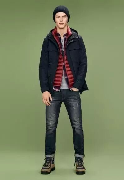 ▲如果不够暖,可在帽T内再塞件绵T。下摆露出来的方式看起来也很潮!