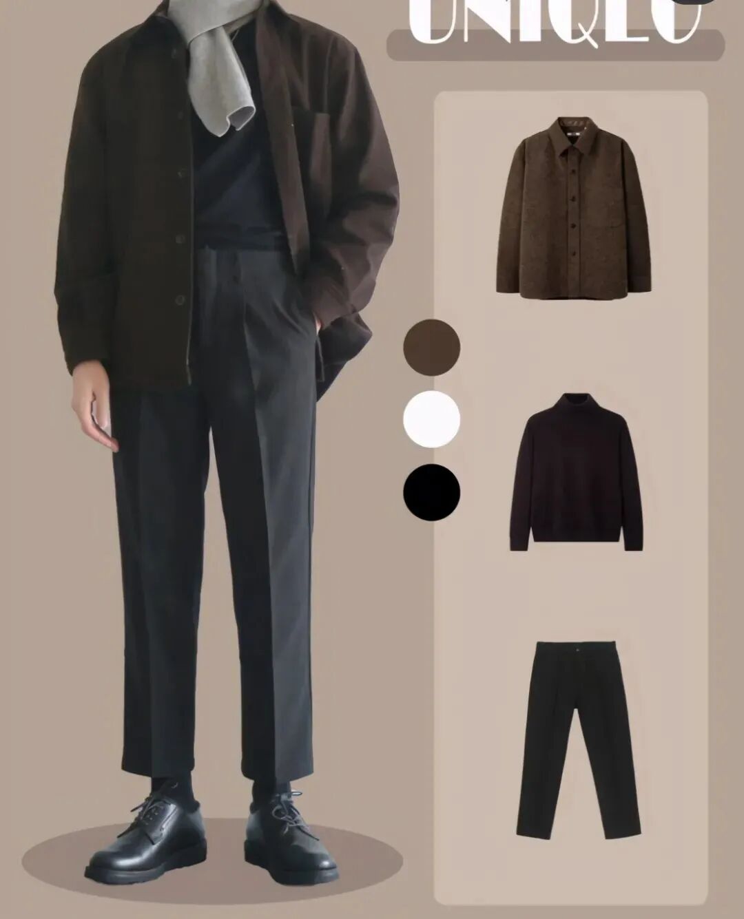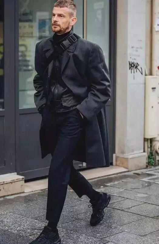 酷黑一直是男同胞们钟爱的色系、百搭又不过时,但一身黑、不免太过普通,其实穿出亮点只需要一点小心机即可,比如黑色的外套可以搭配灰色毛衣、或者卡其色裤子,又或者一条烟灰色的围巾、都是不错的选择,使整体视觉上有一些跳跃性。