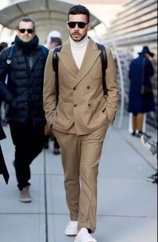 细针织的高领上衣,既不像毛衣会容易使身形显胖,用来单品堆迭混搭非常合适,当上班或正式场合时,利用大地色或灰色调的成套西装表达沉稳感受,内搭同色系的高领上衣不仅瞬间为帅度更加分,还能呈现令人难忘的深刻层次。