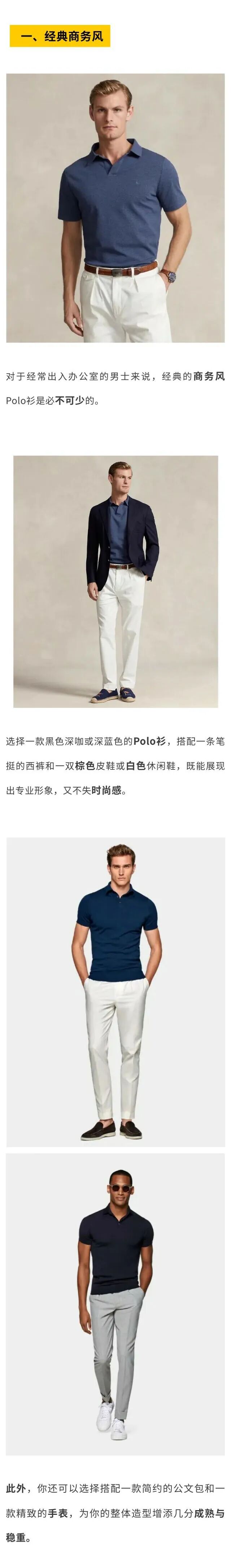 职场男士们夏季衣柜必备的polo衫,作为经典也不可或缺的polo衫,夏天就是它的主场!今天小编分享通勤和休闲的穿搭方式。