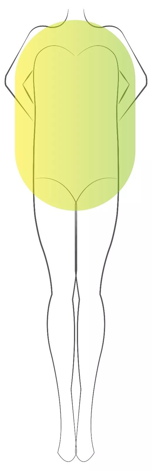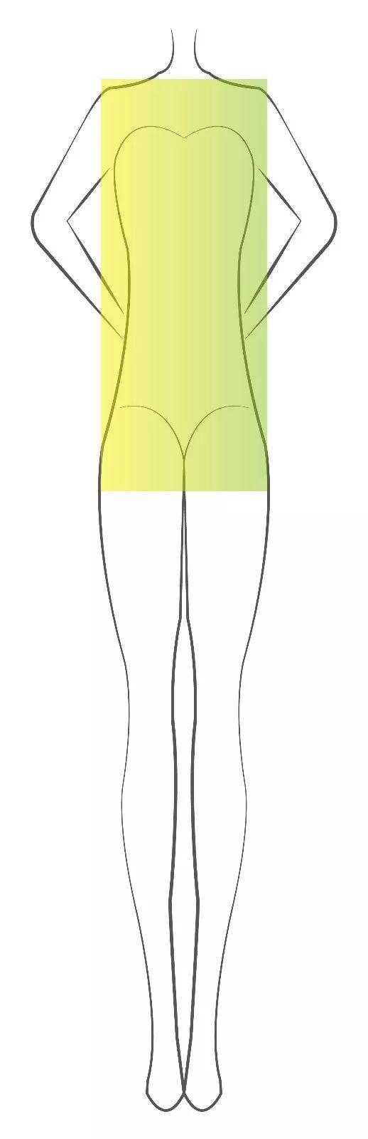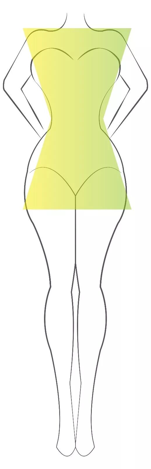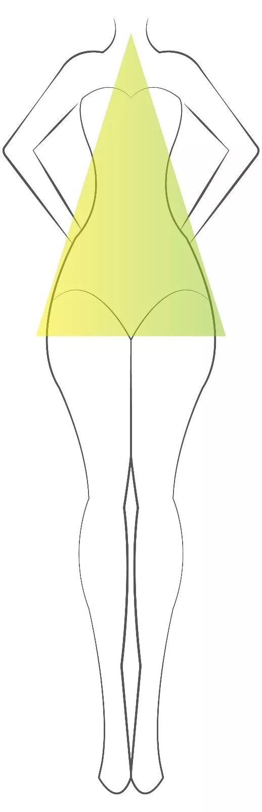 臀围比胸围大,臀宽也比肩膀宽,呈现出三角形线条。
