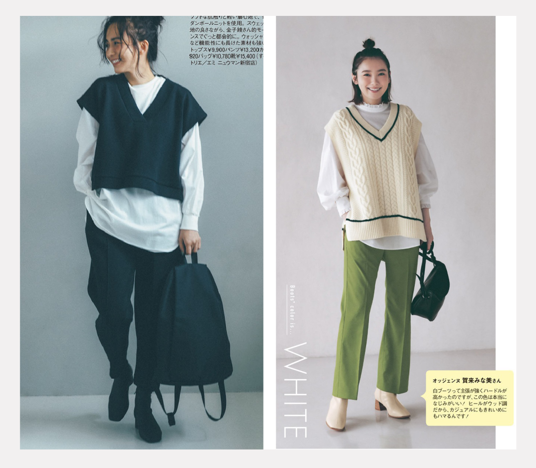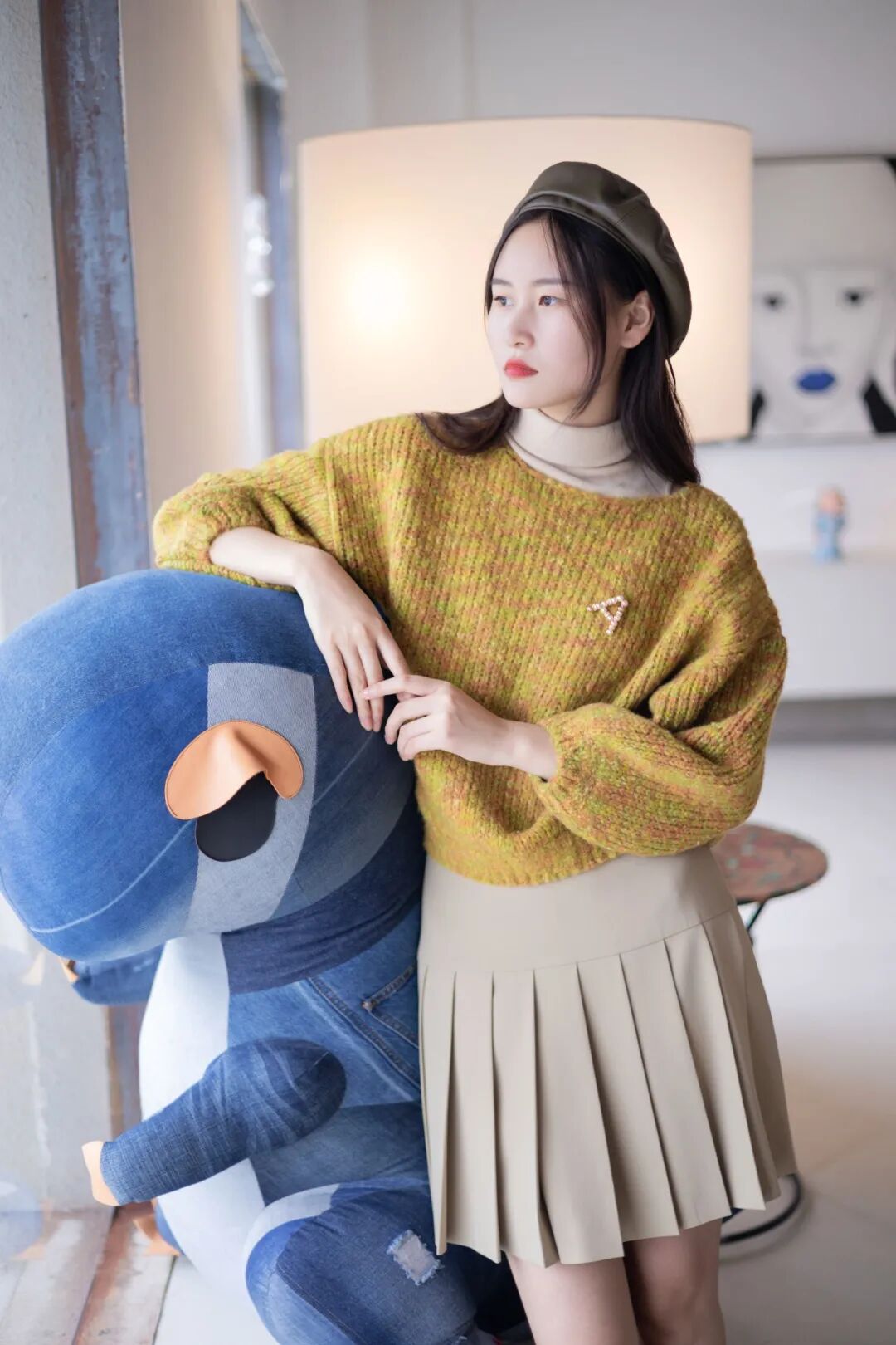 既然是叠穿,那肯定是两层或者三层衣服啦,但是衣服层次一多,就难以掌控。这个时候,色彩的选择就显得尤为重要。如果是两层叠穿,比如这种羊绒衫+毛衣的组合,我们就可以选择用基础色为底色,外面搭配亮色单品。