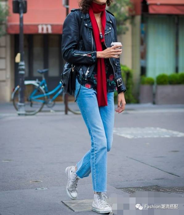 帆布鞋搭配什么衣服?帆布鞋+皮衣+牛仔裤