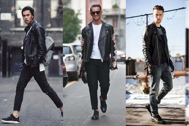 说起机车风格的穿搭,大家一定会联想到摩托车对吧,没错就是摩托车,机车风格的穿搭就是来自摩托车穿搭的灵感,骑摩托车大家都知道天冷吹风很冷,所以一般都采用皮质的外套来防风,因为皮质的关系,穿着者一般都是硬汉气质满满在配上一款利落的发型,就更M了,后来延续,就有了我们机车风穿搭,这种穿搭一般采用皮质的外套,裤子的选择可以是牛仔,也可以是小脚九分裤,整体颜色偏深色类,黑色皮肤可以偏向型男,白色皮肤偏小小奶狗。