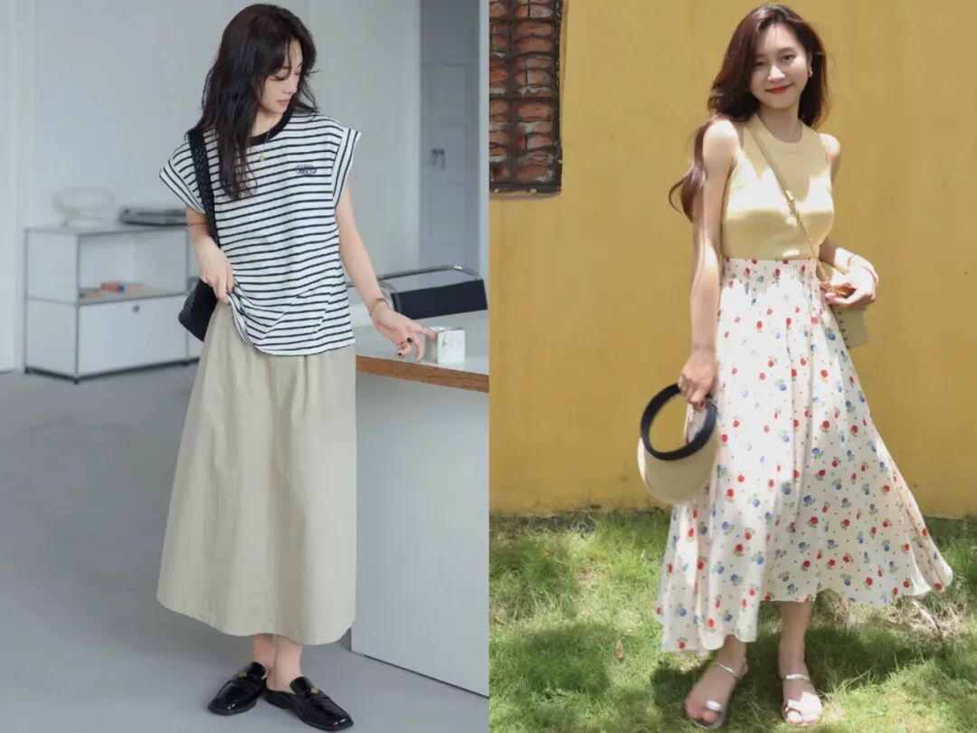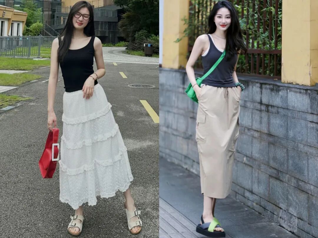 总之,“背心+半裙”是一种非常适合初夏时节的搭配方式,它不仅好看好穿,还能带来清爽感呢!