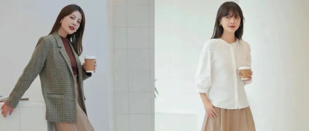 下身的半裙则可以根据裙摆的宽度和长度,掩盖腿部的一些“小劣势”,如小腿粗壮、腿型不直等问题,让整体身材看起来更加匀称。