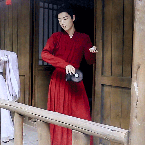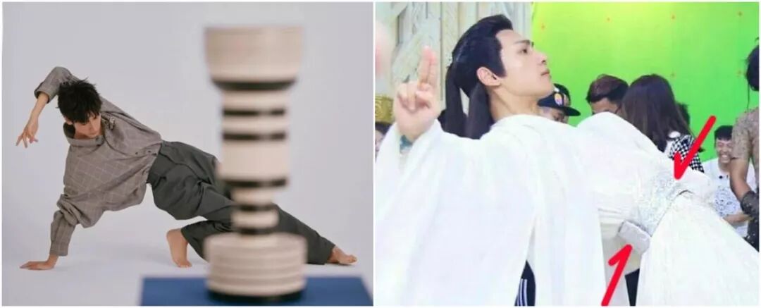 然而一博底迪的腰更细,LOOK!同样是穿古装——视觉上,比肖战还要细一点↓