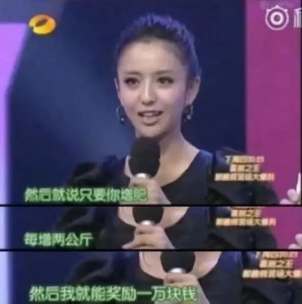 说到腰细必须拉出最胖时体重只有85斤的佟丽娅,她在节目里提到她每增肥2公斤,公司就奖励1万块钱……