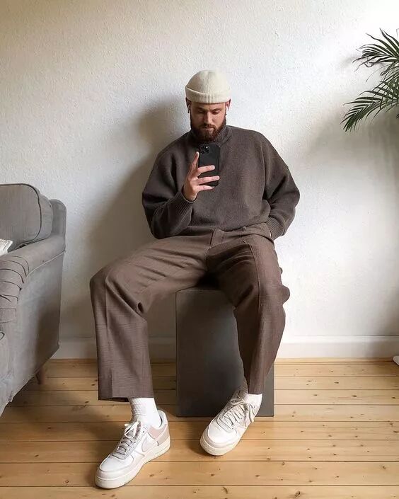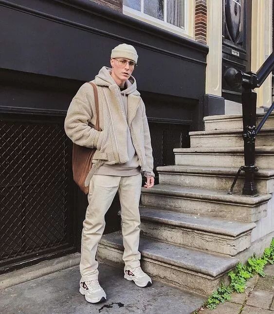 驼色系也很适合男生用作同色系穿搭,它沉稳而低调,却能在低调中表现出卓越的效果。可以在驼色的基调上加入小面积的白色、棕色进行辅助,让层次感更突出。