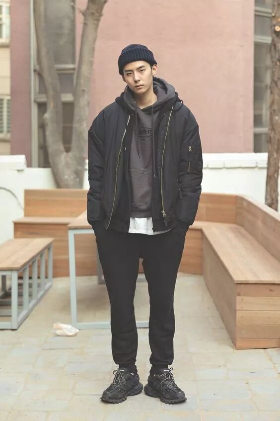 黑、白、灰三大经典色系最不容易出错,其中黑色透着冷静,一身黑的搭配让男生酷感十足。灰色系在色度明暗上更多元,因此在色彩组合上也有更多选择。