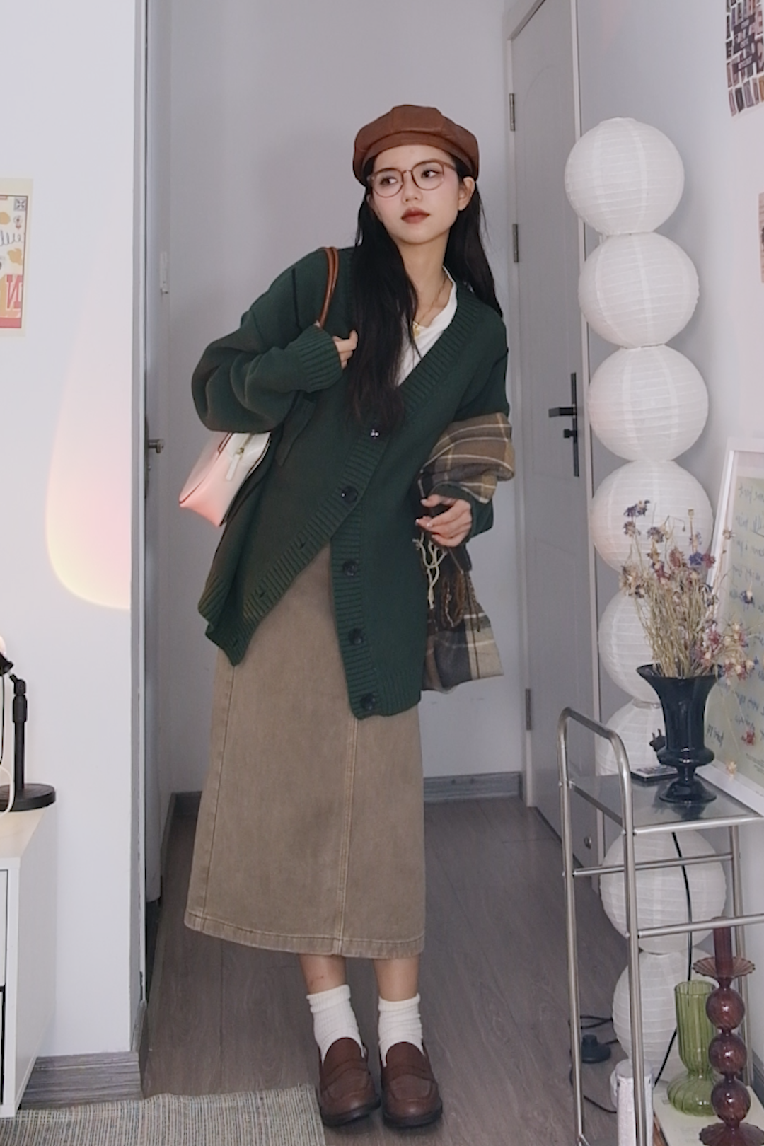 墨绿很适合秋冬来做叠穿,让穿搭更有小心机。