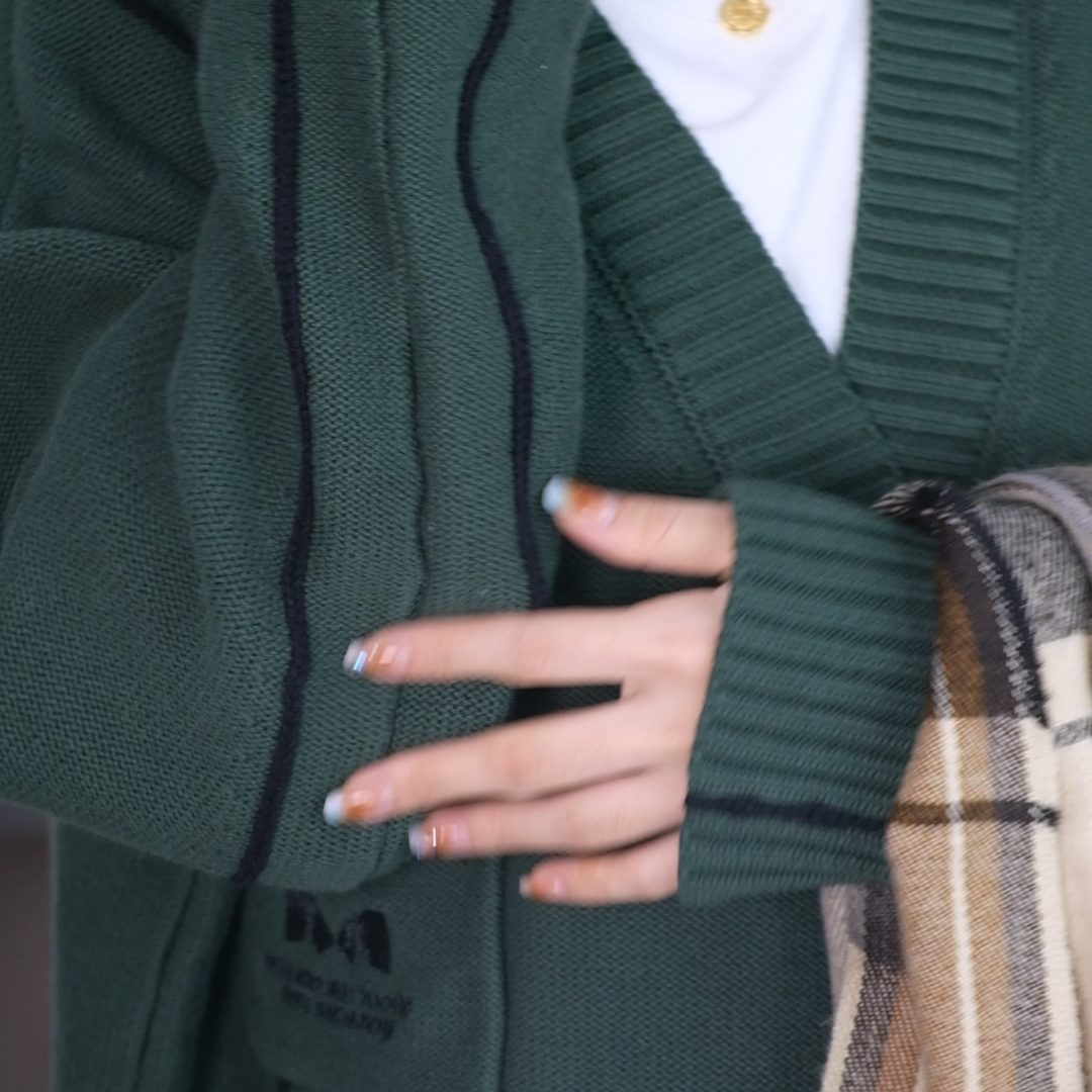 它只有第一颗扣子做成了格纹,所以就显得没有那么那么学院风。可以俏皮也可以沉稳。